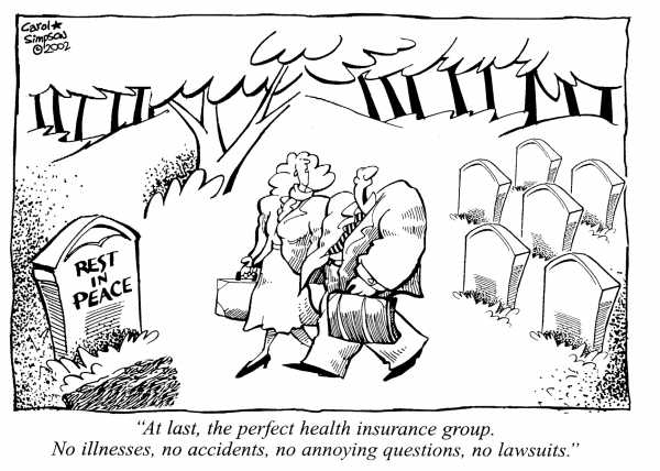 Cartoon – The Perfect Health Insurance Group Posted on July 6, 2016 by henrykotula Posted in Uncategorized Tagged Cartoon, Health Insurance Leave a comment Share this: Click to share on X (Opens in new window) X Click to share on Facebook (Opens in new window) Facebook Click to share on LinkedIn (Opens in new window) LinkedIn Like Loading... Related