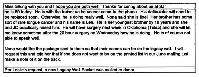 In January 1996, Nona called St. Jude to let the hospital know she was considering making a large bequest, which at that time she said could be up to $500,000.