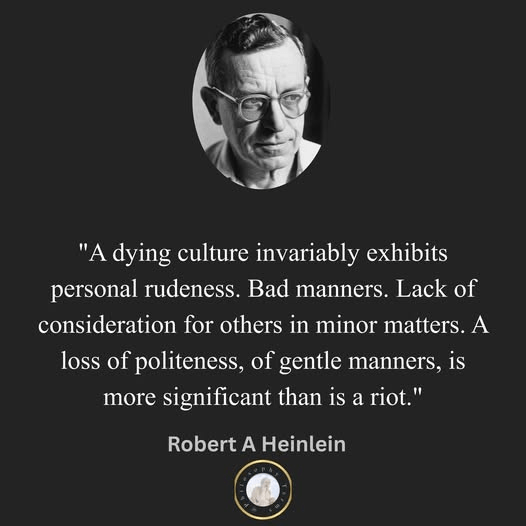 The Subtle Rot vs. The Loud Event: A riot is an explosive, often temporary, reaction to a specific problem. However, widespread rudeness is a slow, pervasive rot. Heinlein argues that this quiet erosion of decency is more dangerous because it signifies a deep, internal collapse of shared values that is much harder to repair.