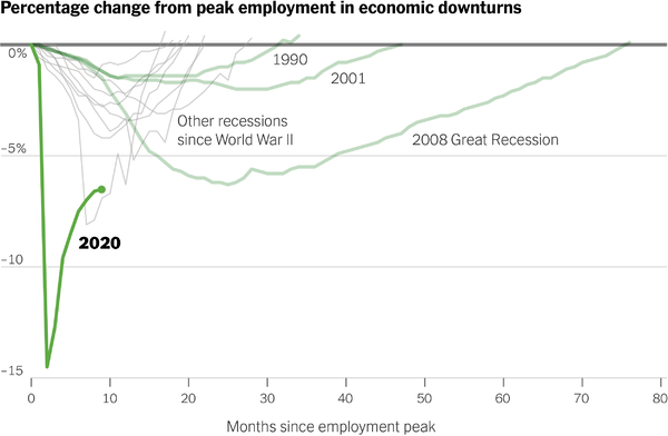 The jobless numbers have provided a jarring catalogue about the economic devastation wrought by the pandemic — spiking to records as the pandemic unfolded in March 2020, and remaining at historic high levels throughout most of 2020.