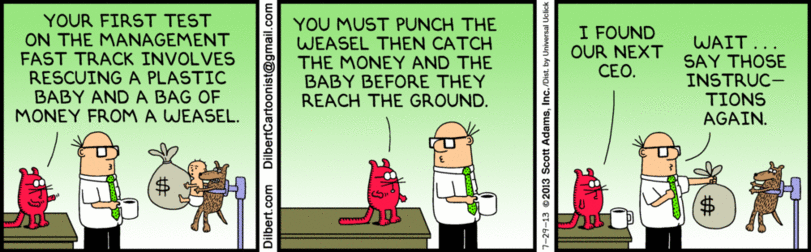 Cartoon – The Management Fast Track Posted on April 26, 2022 by henrykotula Posted in Cartoon, Ethics, Fast Track, Leadership, Management Leave a comment Share this: Click to share on X (Opens in new window) X Click to share on Facebook (Opens in new window) Facebook Click to share on LinkedIn (Opens in new window) LinkedIn Like Loading...