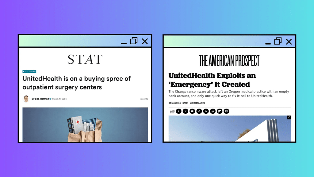 Two newly published investigative reports, by the intrepid reporters at STAT News and The American Prospect, pull the curtains back a little more on the astonishing number of recent acquisitions UnitedHealth has made as it moves deeper and deeper into health care delivery, enabling it to grab ever-increasing chunks of our premium and tax dollars to reward its shareholders.