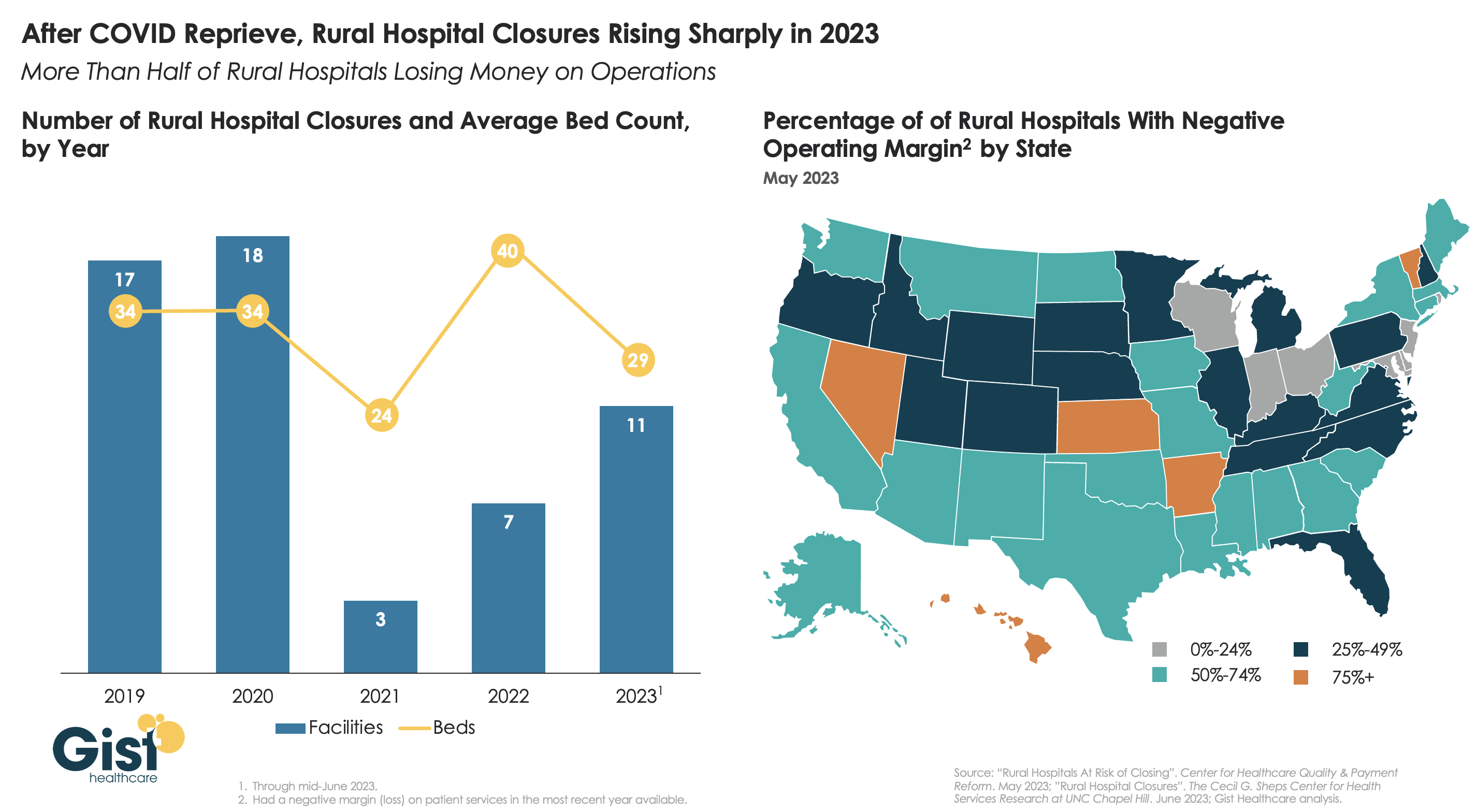 More rural facilities have already closed in 2023 than the previous two years combined, and this year is on pace to be the second-highest number of rural hospital beds lost since 2005.
