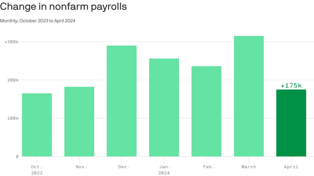 The U.S. economy added 175,000 jobs in April, while the unemployment rate ticked up to 3.9% from 3.8%, the Labor Department said on Friday.