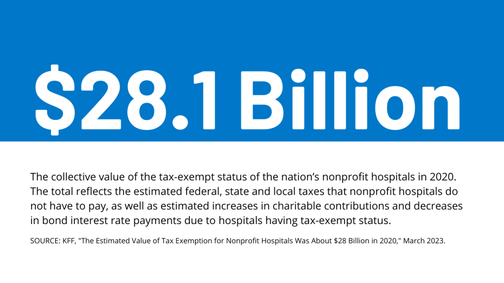 Not-for profit systems control the majority of the 2,987 nongovernment not-for-profit community hospitals in the U.S. Some lawmakers think it’s time to revisit to revisit the tax exemption. It has the attention of the American Hospital Association which lists “protecting not-for-profit hospitals’ the tax-exempt status” among its 15 Advocacy Priorities in 2024 (it was not on their list in 2023).