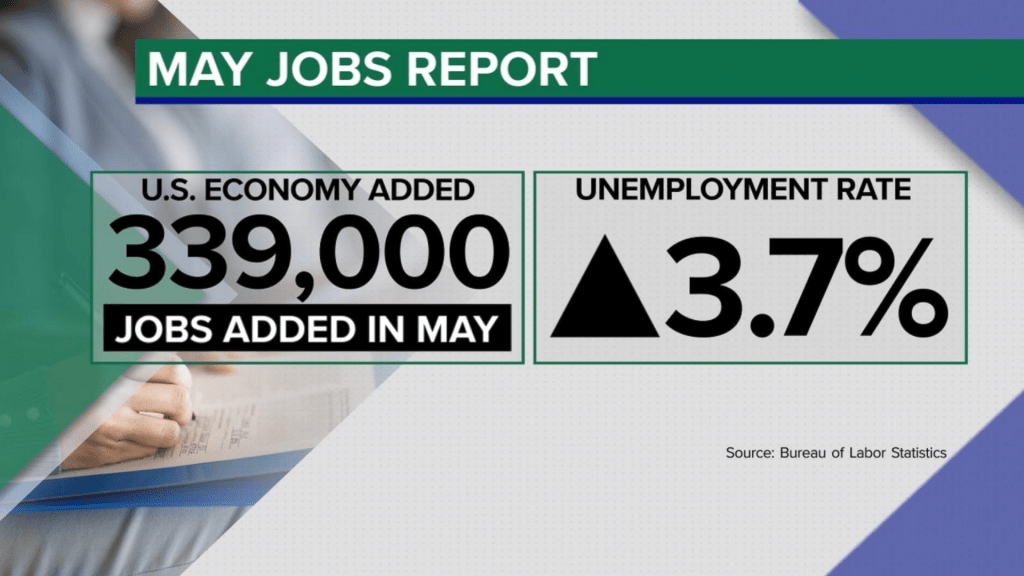 Meanwhile, the unemployment rate rose to 4% from 3.9% the month prior. May’s job additions came in significantly higher than the 165,000 jobs added in April.