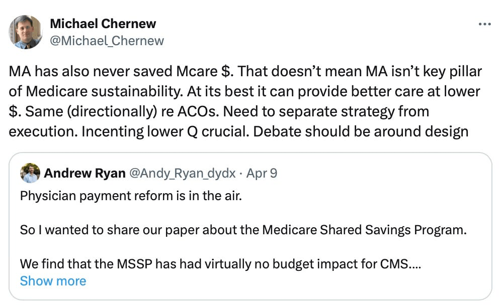 Even Michael Chernow, who heads the Medicare Payment Advisory Commission authorized by Congress in 1997, recently admitted on Twitter that Medicare Advantage “has never saved Medicare money.” But he added, “that doesn’t mean Medicare Advantage isn’t a key pillar of Medicare sustainability. At its best it can provide better care at lower cost.”