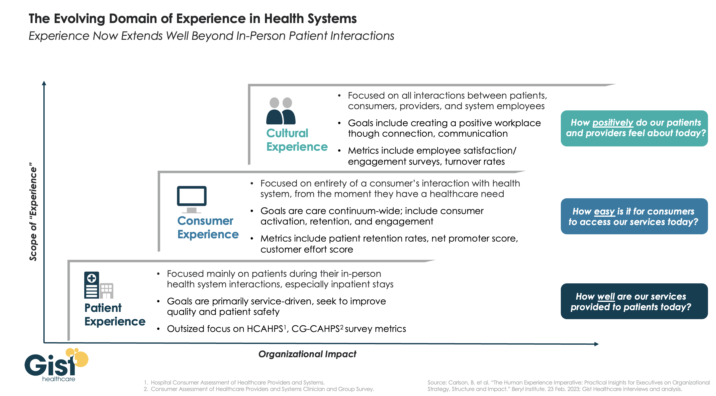 In this week’s graphic, we highlight the importance of broadening the domain of health system experience initiatives beyond patients to include consumers and even employees.