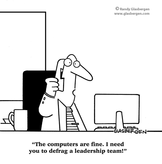 Cartoon – Defragging the Leadership Team Posted on February 28, 2023 by henrykotula Posted in Cartoon, Defrag, Leadership, Team Leave a comment Share this: Click to share on X (Opens in new window) X Click to share on Facebook (Opens in new window) Facebook Click to share on LinkedIn (Opens in new window) LinkedIn Like Loading...