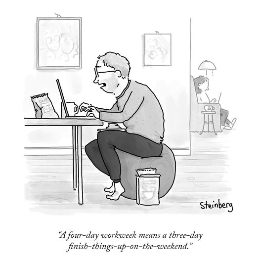 Cartoon – Four Day Workweek Posted on March 23, 2023 by henrykotula Posted in Cartoon, Sign of the Times, Work, Work Life Balance, Work Schedule Leave a comment Share this: Click to share on X (Opens in new window) X Click to share on Facebook (Opens in new window) Facebook Click to share on LinkedIn (Opens in new window) LinkedIn Like Loading...