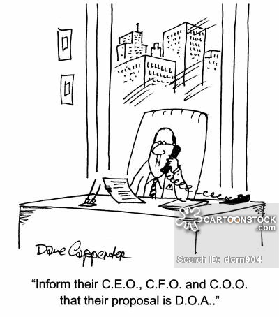 Cartoon – DOA Proposal Posted on February 9, 2016 by henrykotula Posted in Uncategorized Tagged Cartoon, DOA, Proposal Leave a comment ‘Inform their C.E.O., C.F.O. and C.O.O. that their proposal is D.O.A..’ Share this: Click to share on X (Opens in new window) X Click to share on Facebook (Opens in new window) Facebook Click to share on LinkedIn (Opens in new window) LinkedIn Like Loading...